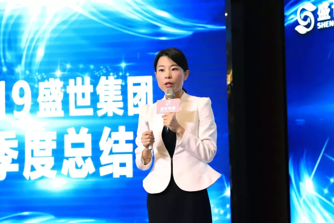 伴隨著舞臺的熱浪,盛世集團執行董事吳培莉女士、盛世集團執行總裁何倩女士在眾人期待的眼神中登臺進行了季度總結,細聽之下,總結深處藏著的是每一位家人對工作的負責與付出,是所有盛世英雄的勤懇敬業和不懈奮斗。