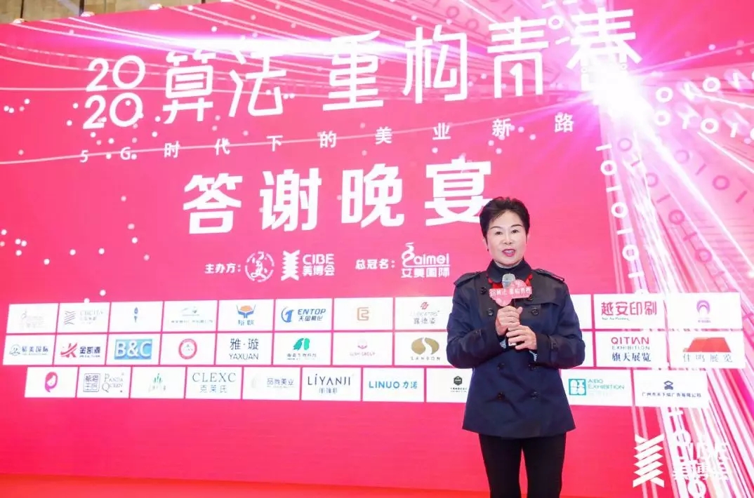 在答謝晚宴上,全國工商聯美容化妝品業商會監事長&書記、廣東省美容美發化妝品行業協會會長、CIBE中國國際美博會創始人馬婭致辭。
